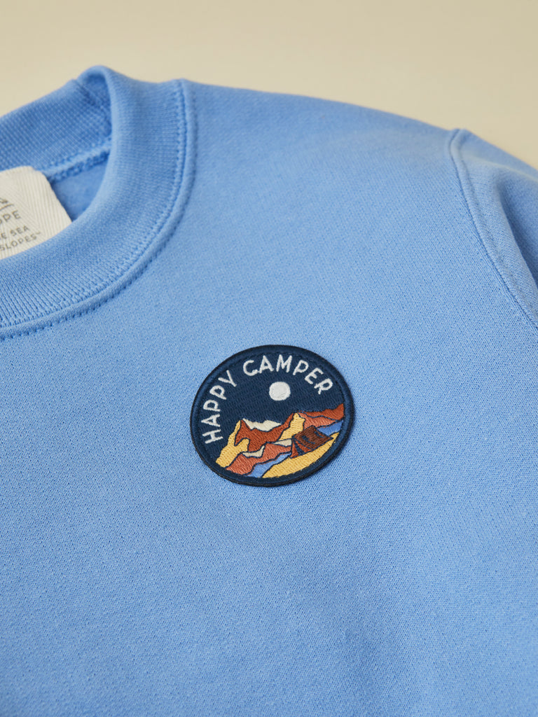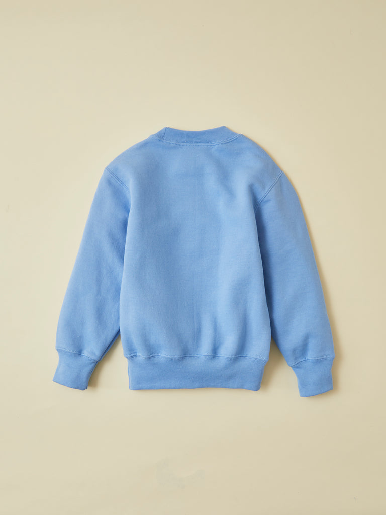 Cotton pullover sweatshirt with embroidered patch. Soft and cozy fit.  Machine wash cold, inside out with like colors. Tumble dry medium. Do not iron. Color: Sky Blue