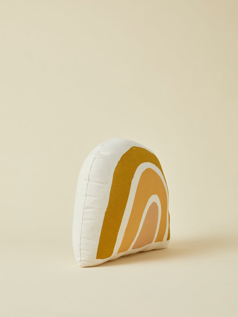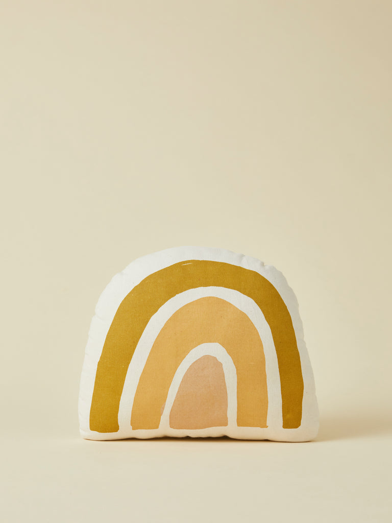Our mod rainbow pillow is sure to bring a little magic to any space. Sewn and screen printed by hand on natural canvas by local artisans.