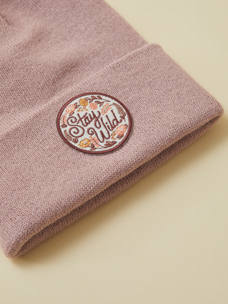 Color: Rose Knit beanie with embroidered patch Soft & stretch fit | 100% Acrylic Hand wash cool water | Turn beanie inside-out before washing | Dry flat Made for ages 5 and up | One size fits most Youth & Adult Made in the USA