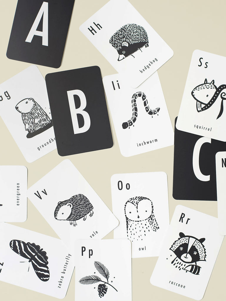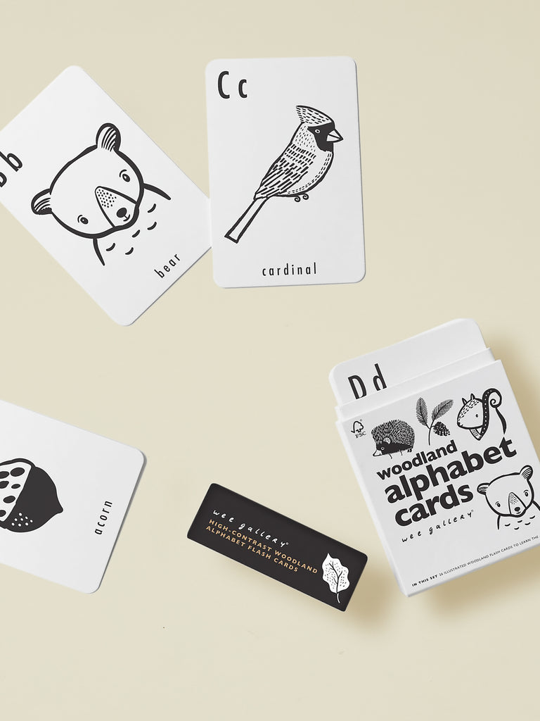Wee Gallery Woodland Alphabet Cards are the perfect gift for newborn baby, toddler, or any age in between. The high-contrast animal and jungle illustrations create a mesmerizing display for babies, while the bold letters create a delightful alphabet learning experience for older children.